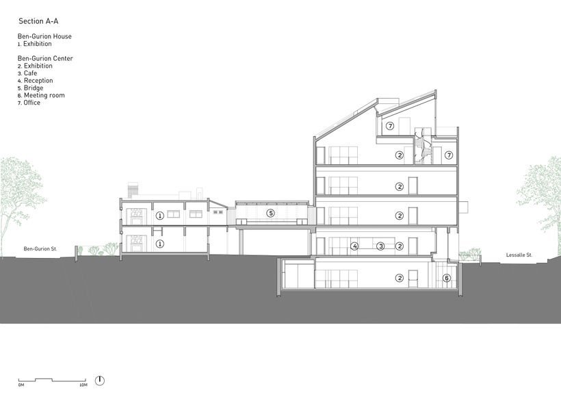 The Ben Gurion Center project is an addition of a new building in the backyard of the historical Ben Gurion House. Currently, the Ben Gurion House is a museum and visitors’ heritage center, located in Ben Gurion Boulevard, at the heart of Tel Aviv. It was David and Pola Ben Gurion’s residence from 1931 to 1973. As such, it offers a view to the formative decades of the State of Israel through the domestic environment and its first Prime Minister.