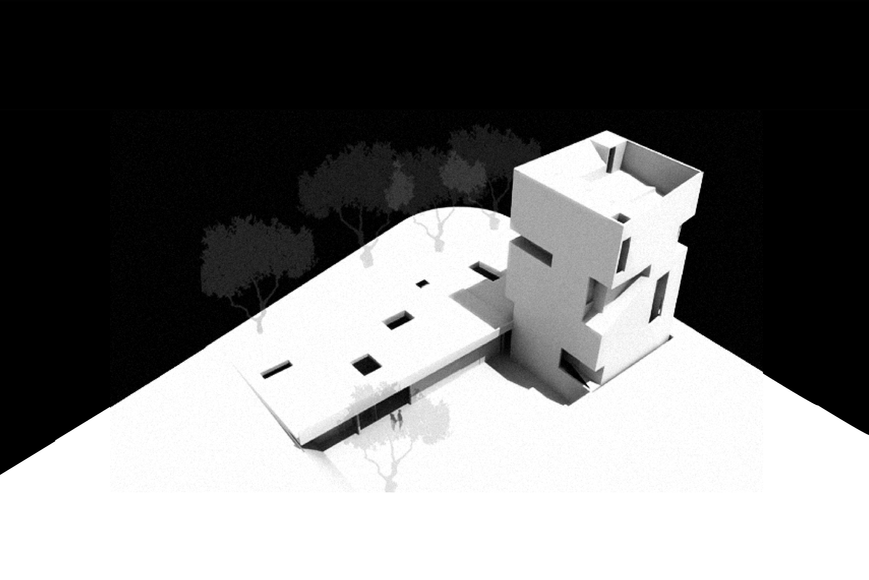 Twice House responds to the demand for an oversized floor area of 1,000 sqm. and to the inherent duplicity of the given program, by splitting itself into two different houses and by compressing itself to a minimal footprint of 10% of the total lot area.